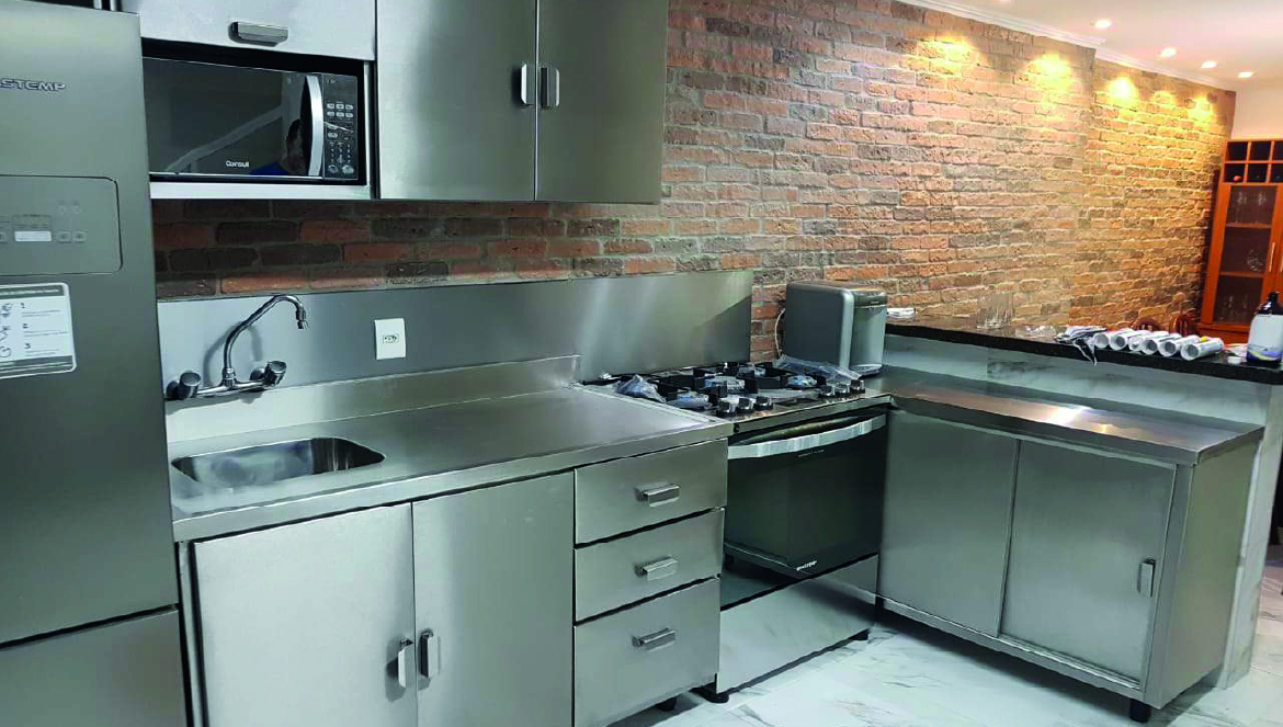 Projeto especial sob medida para aplicação residencial, com móveis da cozinha feitos 100% em aço inox. Sofisticação e bom gosto para dar um toque especial e totalmente personalizado para a sua casa ou apartamento.